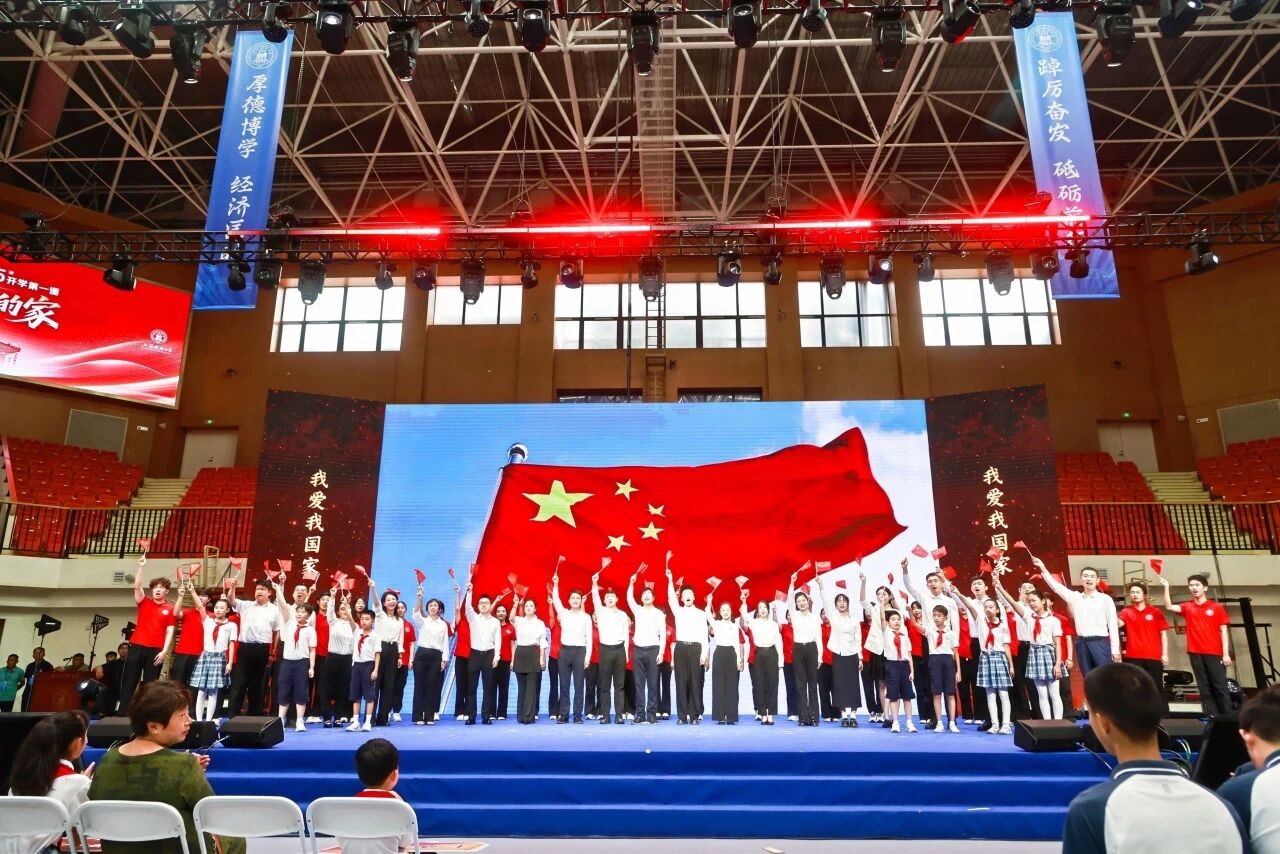 课程在全体合唱《国家》的歌声中圆满落幕,“家是最小国,国是千万家”的激昂旋律回荡全场,象征着上财人赓续红色血脉、矢志报国的坚定信念。本次“开学第一课”首次实现大中小学思政课一体化全场参与,真正构筑起“同心圆”式思政育人生态,让“厚德博学,经济匡时”的上财传统在“家”的叙事中焕发新的时代光芒。