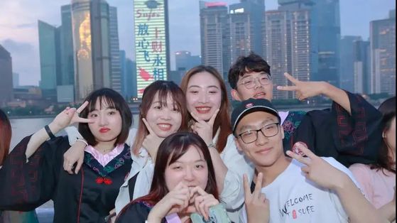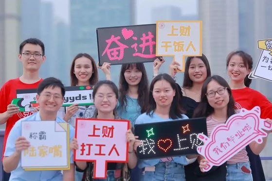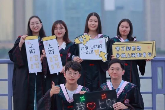 在志愿者的组织下,毕业生和校友们对着镜头高喊“我爱上财,毕业快乐”,现场气氛达到了高潮,黄浦江畔满是上财人欢庆毕业的热闹氛围。