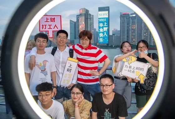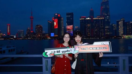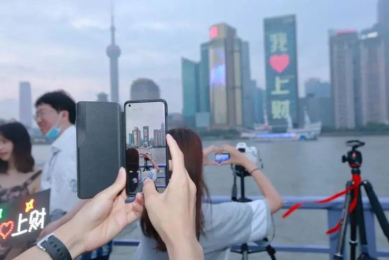 傍晚6时左右,上财学子与校友们早早聚集于外滩十六铺码头附近,在工作人员和志愿者准备好的最佳拍摄点留下一张张特别的毕业照、一段段精彩的毕业祝福短片。