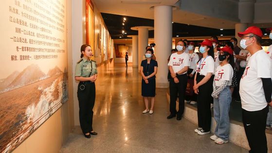 头顶烈日,冒着高温,调研团队来到浙江省台州市,开展党史学习教育,拉开了2021年千村调查党史学习教育活动——庆建党百年、学史千村行的序幕。7月8日下午2时许,师生一行参观了一江山岛登陆战纪念馆。纪念馆通过数字化沙盘模拟、实物图片和文字资料展示了1955年陆、海、空三军将士首次联合渡海登陆作战,一举攻占一江山岛的激烈战斗的场景。一江山岛登陆战是人民解放军陆海空三军首次联合登陆作战,为解放浙东沿海全部岛屿迈出了重要一步。参观活动后,许书记带领师生来到一江山岛登陆战英烈群雕前庄严告白:庆建党百年,学史千村行;请党放心,强国有我。