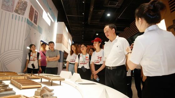 7月9日下午,在台州市黄岩区委书记陈建勋的陪同下,上财师生来到黄岩智能模具小镇、模塑产业创新服务综合体和朵云书院,深入了解台州模具产业迭代升级、产业数字化推进、创新驱动发展和厚植文化软实力建设等情况,并结合设置在朵云书院的“百年百图”特展开展现场教学,讲解专题党课。