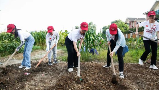 7月8日下午5时许,校党委书记许涛与参加千村调查的同学们一起前往方林村农田,开展“五个一”劳动体验,即完成做一餐农家饭、扫一次农家院、学一项农具、会一个农活、知一种农作物。2位同学来到村民家中体验了做一餐农家饭——包饺子,还有2位同学手持扫帚,将一块百余平方米的大院打扫干净。在当地村民的示范和指导下,许书记与同学们一起拿起锄头,在菜畦上经过挖坑、培土和浇水等过程种下了茄子、木耳菜、黄豆和玉米幼苗。随后许书记带领同学们在地里体验了掰玉米、摘西瓜,还认识了番薯、甘蔗、姜、秋葵等农作物。最后,许书记与在场的老师们一起分享了劳动成果——西瓜,劳动后的西瓜更甜了。