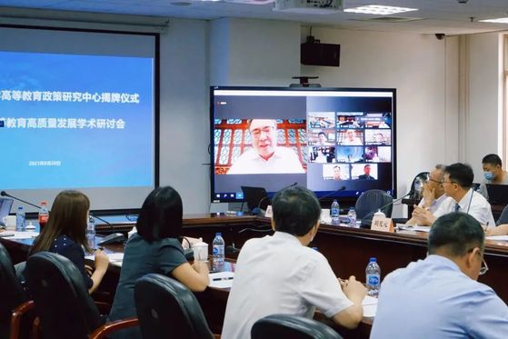 2021年8月20日下午,上海财经大学公共经济与管理学院成功召开了“上海财经大学高等教育政策研究中心揭牌仪式暨中国高等教育高质量发展学术研讨会”,开启了我校高等教育研究的新篇章。我校校董单位浙江兴力集团多年来一直秉持着支持教育的理念,与多所高校建立产学研合作,此次正是该集团的下属企业浙江绍兴舒美针织有限公司的捐赠,为我校高等教育政策研究中心的成立和今后研究工作的开展提供了资金支持。本次会议采用线上和线下相结合的方式,来自全国多所高校的专家领导出席了本次会议。