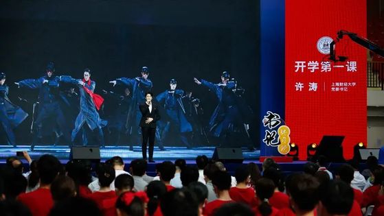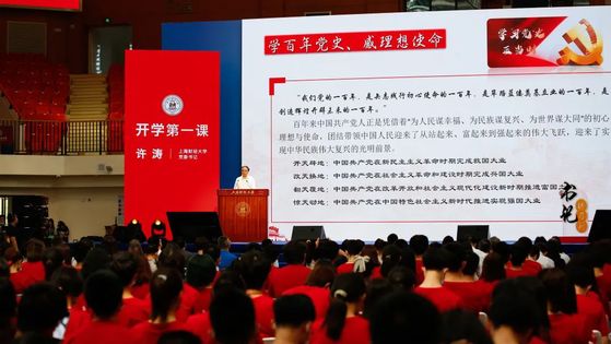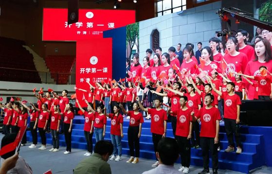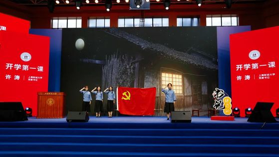开学典礼暨书记第一堂思政课在全场师生们齐唱《在灿烂阳光下》的歌声中落下帷幕。上财新生与新时代同向同行,不负时代、不负韶华,在鲜红党旗下,在灿烂阳光下,守好百年母校的初心使命,当好祖国建设的先锋力量,放飞人生出彩的青春梦想。