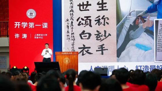 很荣幸今天能够作为新生辅导员亲身参与开学典礼暨书记第一堂思政课。2021年是一个有特殊意义的年份,于所有在场观众而言,今年恰逢建党百年和上海财经大学东迁百年,在这漫长的历史征程中,我们见证了一辈又一辈上财人的初心践履与使命担当。于我个人而言,在疫情防控的常态化形势下,我迎来了148个新面孔,他们稚嫩模样的背后充盈着鲜活的梦想,希望他们能够从今天的开学典礼启程,秉承马寅初先生“经济匡时”的教育理念,搭乘“双一流”建设的东风,努力成长,终有一天抵达梦想的远方。