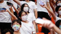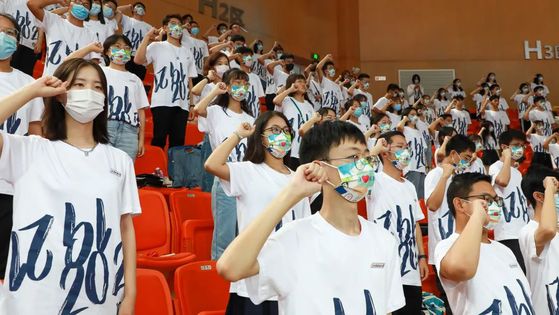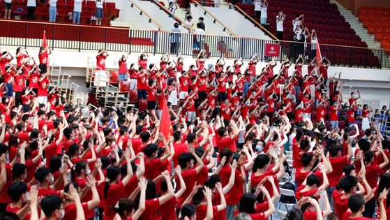 典礼开始前,随着悠扬的校歌,大屏幕上重现了2021级新生独立报到的场景,一个个温暖的笑容、一幕幕温馨的画面展现在师生们的面前。在校学生艺术团同学的带领下,同学们挥舞着国旗、校旗,齐声合唱,开学典礼在激情昂扬的歌声中拉开帷幕。