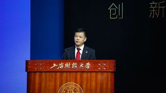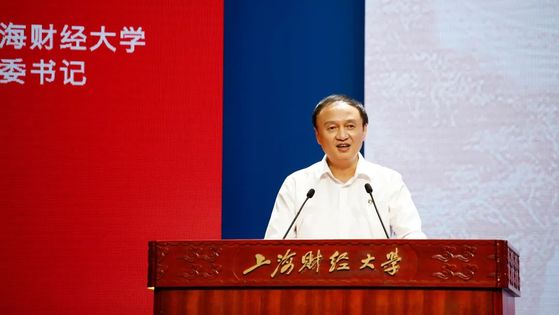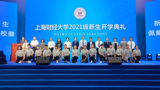 随后,各院(所)领导老师上台为新生代表授戴校徽。全体新生传承了“上财人”共同的名字,面向校旗,庄严宣誓将“为中华民族的伟大复兴贡献一名上财人的力量”。