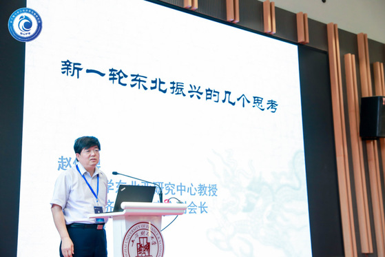 吉林大学东北亚研究中心教授、全国经济地理研究会副会长赵儒煜教授以“新一轮东北振兴的几个思考” 为主题发表了主旨演讲。他围绕“东北振兴的关键是什么?如何推进市场化改革?东北的创新怎么了?人才流出怎么看?东北优势何在?”五个方面进行论述。