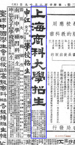 7月23日,在中国共产党第一次全国代表大会召开的同日,《申报》和《时报》上刊载了上海商科大学的第一份招生广告。