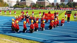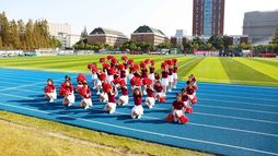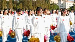 面带阳光般的笑容,花球方队入场。她们尽情舞蹈,拥抱明天;飞扬的秀发,灵动的舞步,标准的动作都洋溢着青春的活力,形成一道靓丽的风景线。