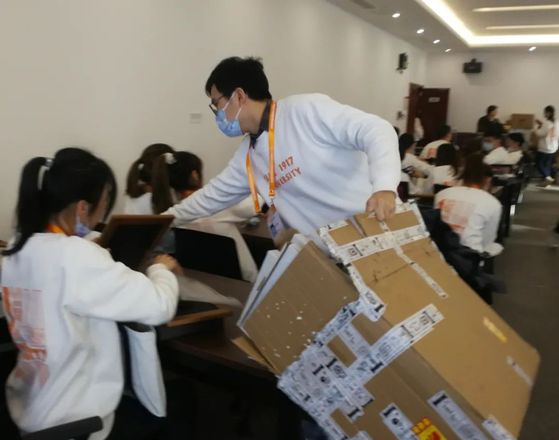 会务工作组志愿者协助管理老师进行会场内的布置和物资的分发,为整个大会提供了坚实的后勤基础,全程在会场中服务,维持会场秩序并为有需要的校董提供帮助,确保大会顺利举办。
