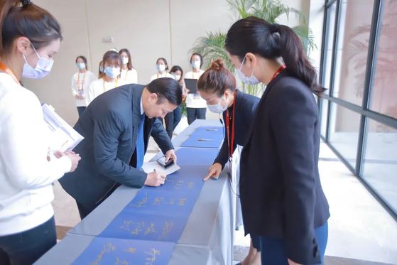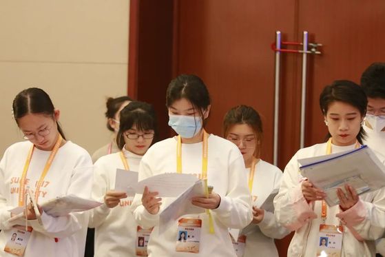 11月11日中午,上财“小叶子”从进博会的工作岗位回归返校,便立即进行了此次校董会成立大会志愿者工作的整体培训;11月13日早上大会开始前,志愿者们在指导老师的带领下再次进行分组岗位培训,熟悉当天的整体流程和任务分工,为志愿者工作的顺利开展做好充分准备。