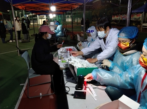 3月18日12点起,我校对国定、武东、武川三校区实行“2+12”管理,志愿者们马不停蹄再次上阵,配合完成核酸检测工作。