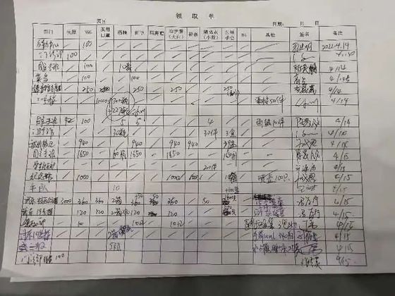 对每一批进校的物资都要仔细清点种类数量,逐一核对,并登记入账。由于捐赠物资的种类繁多,即便是同样的物品,由于尺寸、型号、每箱包括的数量都会有所不同,这些都需要一一地记录在册,有时候仅一种物资当天的记录就能达到上千条。“光点货就要一个小时,而且,必须要保证这些数字一个都不能错,都能核得上”。