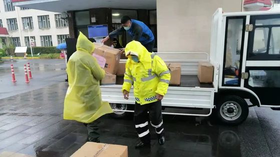 无论白天黑夜,暴雨烈日,只要物资车辆来校,抗疫物资保障服务队马上放下手头的工作,第一时间前往国定路校门进校接货。“最多的一次,从仓库到校门,10分钟内来回跑了6趟货。”
