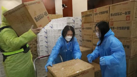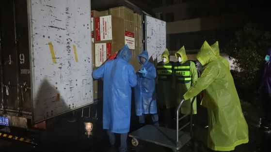 “下雨天搬完,裤子和鞋全湿了”。每次要根据物资多少,组织人员卸货搬运,学校后勤保卫,教师志愿者等齐上阵,将一箱箱爱心物资从车上卸下来,再根据物资的种类分门别类地搬运到仓库指定地点存放。