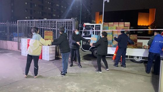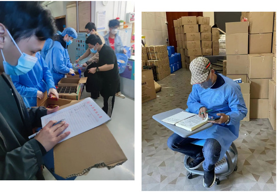 下午5点半,一批学生急需的生活用品到校,为了及时将这些物资送到师生手中,全体工作人员顾不上吃饭,紧急卸货,清点,分发,当天晚上23点左右,在后勤、团委等相关部门的协助下,将物资第一时间送到了老师和学生手中。“累是累点,但是值得,想想他们接过物资的时候,口罩里有张笑脸再对我说声‘谢谢’!”