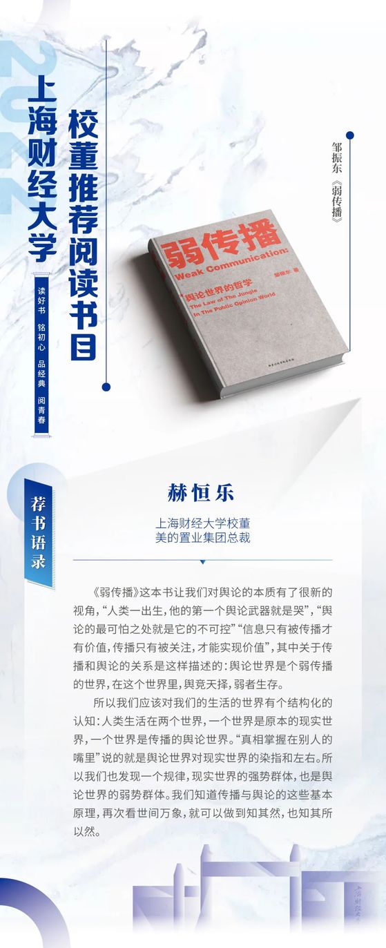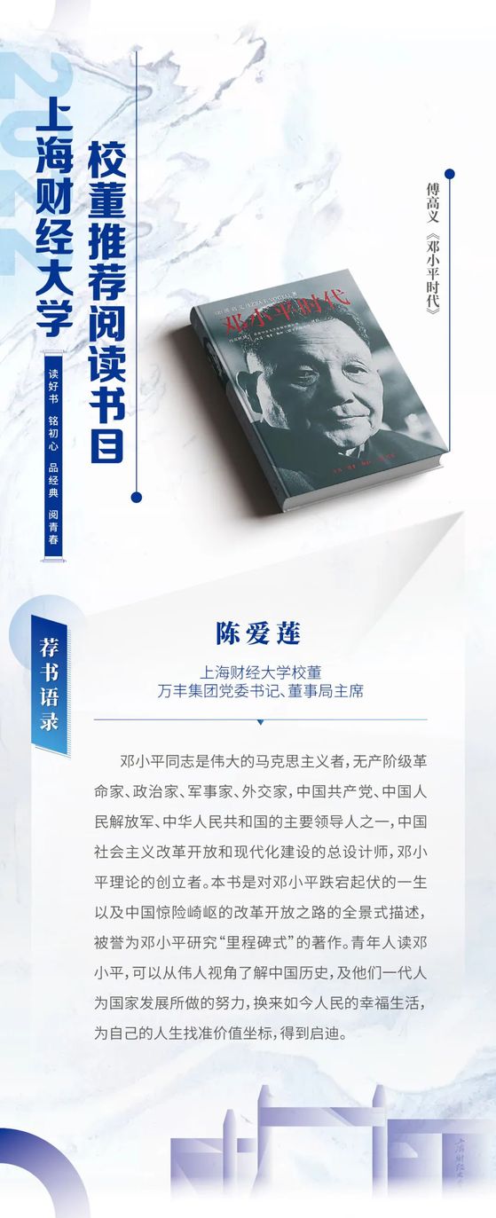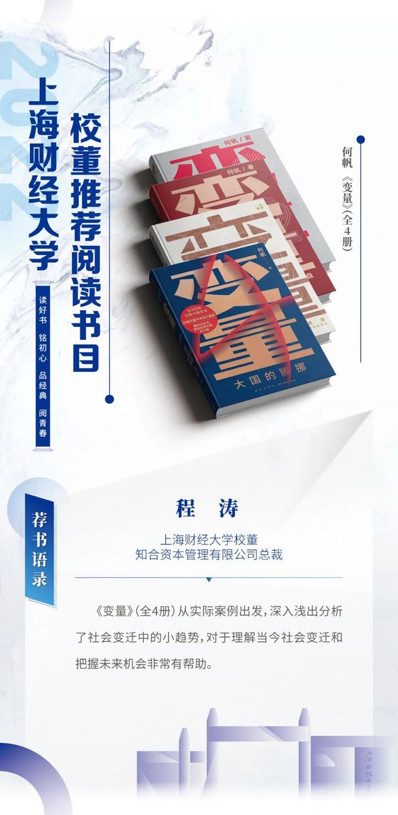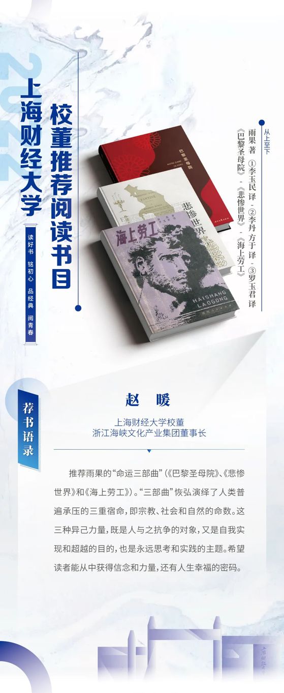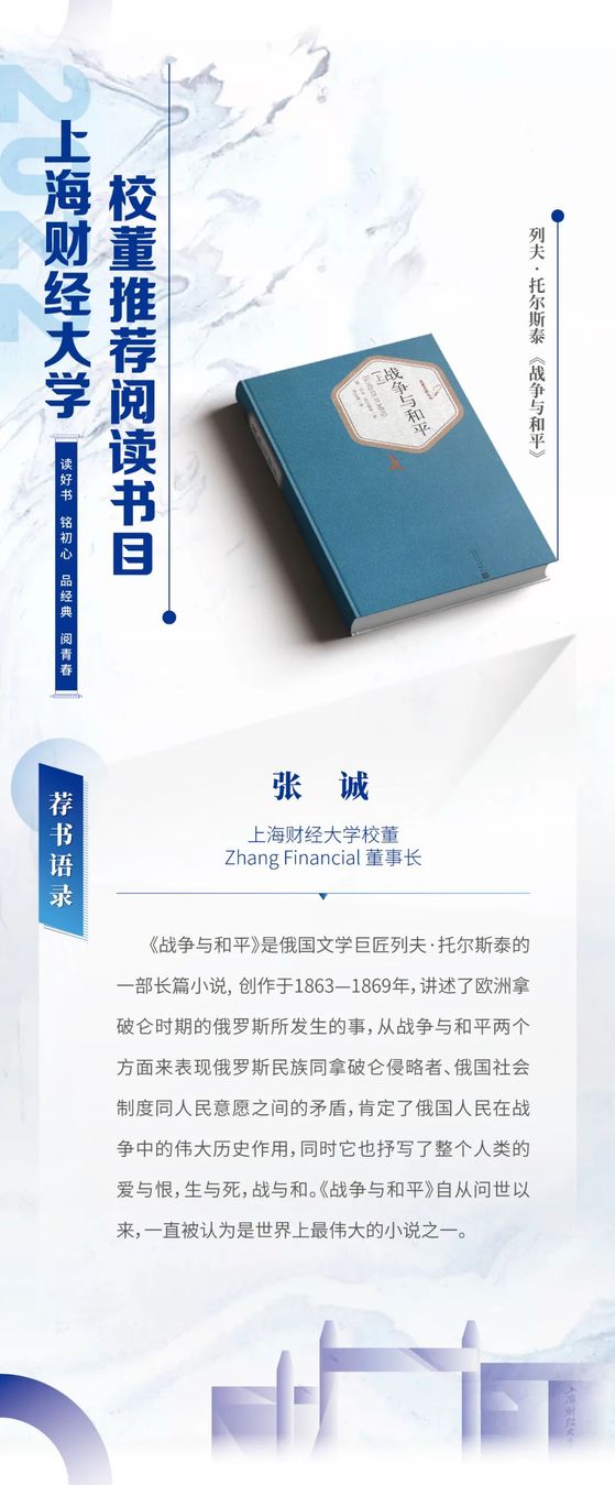 读好书 铭初心 品经典 阅青春——2022年上海财经大学校董推荐阅读书目