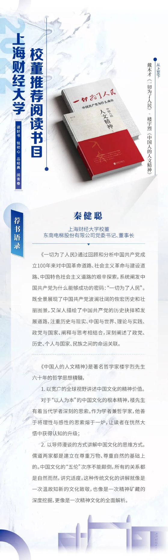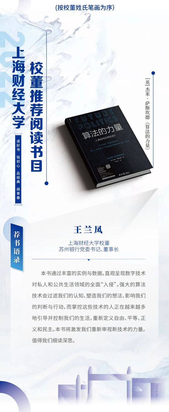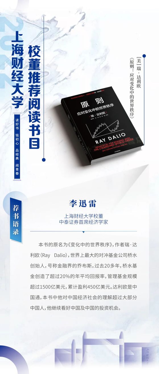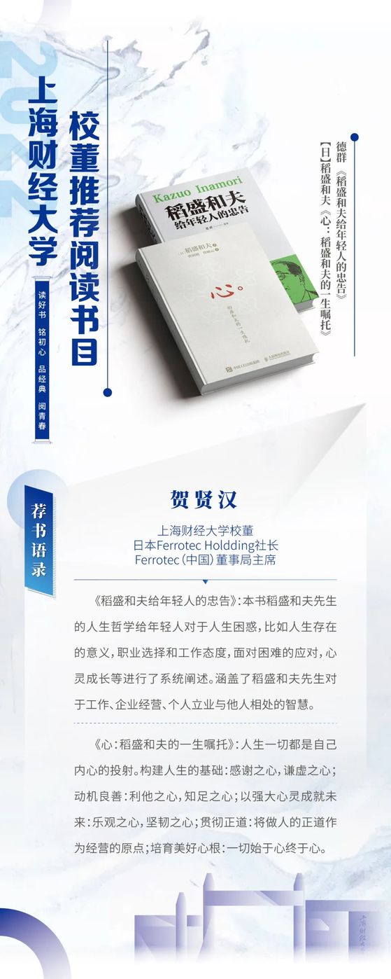 读好书 铭初心 品经典 阅青春——2022年上海财经大学校董推荐阅读书目
