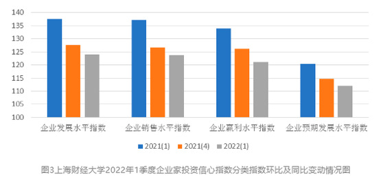 根据上海社会调查研究中心上财分中心和上海财经大学应用统计研究中心对上海市企业领导人或企业家的调查,2022年第一季度上海市企业家投资信心指数为120.21点,环比下降3.62点,同比下降12.07点。