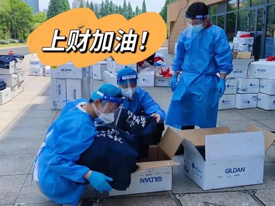 我校校董、友山基金管理有限公司董事长何炫密切关注我校防疫动态,时刻关心师生健康安全。在获悉由于气温日渐上升,部分在校同学手头夏季衣物不足这一情况后,学校从4月28日起启动了厂商对接、版型设计、物流沟通等一系列沟通,在校董单位——友山基金管理有限公司的公益支持下,4小时完成设计、1天完成资源对接和货款加急,加急定制了10000多件上财战“疫”专属的五四青年文化衫。5月3日,疫情防控学生志愿者突击队与六大战区紧密配合,清点数量、分类分发,将这件青春守护、实事接力的五四青年节专属文化衫送到了楼宇内的同学手上。