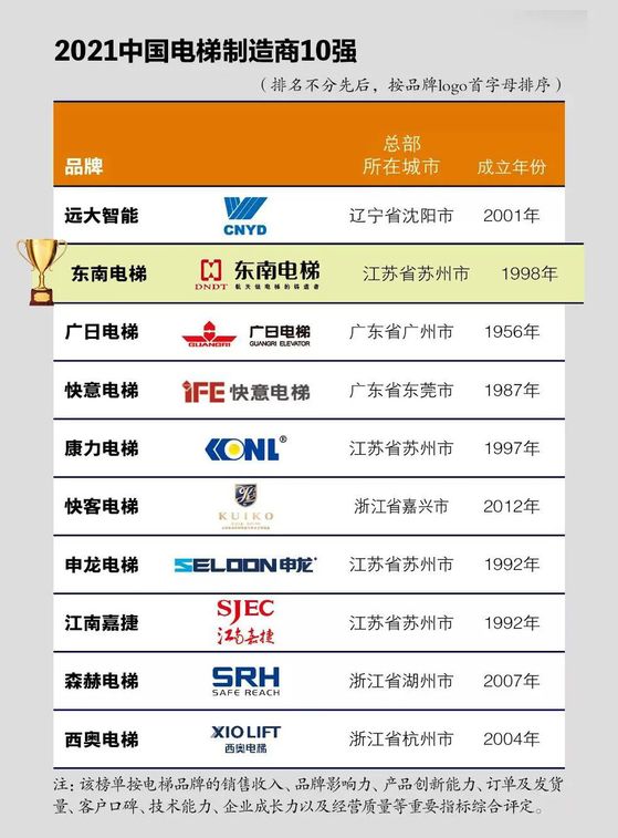 我校校董单位东南电梯连续3年荣登“中国电梯制造商10强”榜单