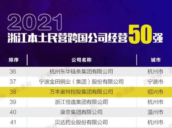 我校校董单位万丰奥特控股集团入围“2021年浙江本土民营跨国公司经营50强”