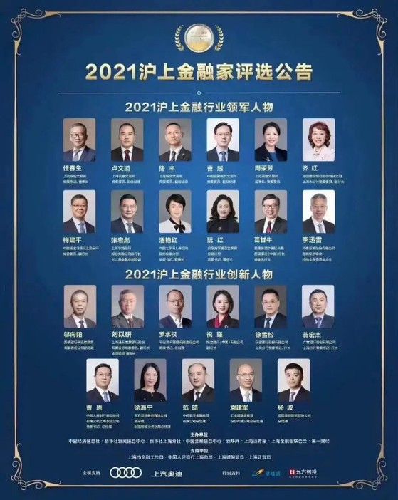 2021“沪上金融家”活动由新华社中国经济信息社、新华社新闻信息中心、新华社上海分社、中国金融信息中心、新华网、上海证券报、上海金融业联合会、第一财经主办,上海市金融工作局、中国人民银行上海总部、上海银保监局、上海证监局支持。评选活动在2021年8月正式启动,获奖榜单经申报推荐、推举委员会提名、资格审核、媒体评审、网络投票、专家评审等流程产生。