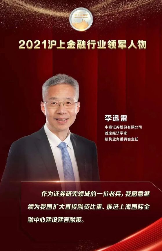 李迅雷校董是中泰证券首席经济学家、机构业务委员会主任。作为中国证券业卖方研究体系的开创者、长期投资理念的积极践行者和推广者,长期以来,他始终秉承“专业、深度、领先、诚信”的研究理念,坚持从宏观着眼,从市场基本面入手,面对国际国内复杂的经济形势,冷静观察、潜心研究,积极为中国经济可持续发展和改革发声,为资本市场的规范发展和繁荣建言献策。他在证券研究领域深耕细作的同时,努力培育分析师队伍,助推提升行业研究市场化水平,助力构建良好行业生态,赢得了广泛的赞誉。
