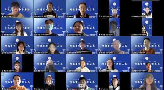 情景模拟实践旨在让营员结合所学,于特定情境中进行领导力的实践,解决实际问题。5月,营员们在给定条件下,进行合作探究,给出可行的解决方案或进行实景实践。在辅导员老师和学联历届学生骨干的指导下,营员们就防疫实景封控、码头突发疫情、学生干部培养以及线上云团课四个主题展开研讨。其中,在线上云团课活动中,营员们就“建团百年”这一主题,给甘肃古浪四中的孩子们带来了一场别开生面的线上团课。