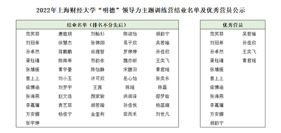 至此,2022年“明德”青年领导力训练营圆满结束。我们衷心祝愿明德营员们可以学有所得,在日后的学习工作中学以致用,成长为新时代富有卓越领导力的青年才俊!