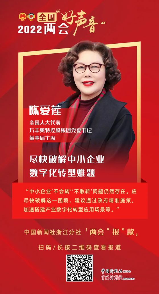 近日,《中国新闻网》、《证券日报》等媒体聚焦我校校董、全国人大代表、万丰集团董事局主席陈爱莲履职风采,畅谈产业数字化发展。