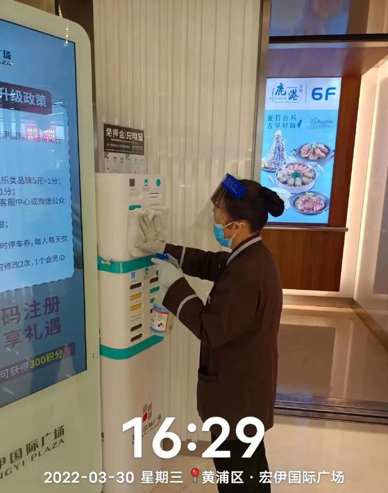 上海宏伊国际广场工作人员均佩戴口罩上岗