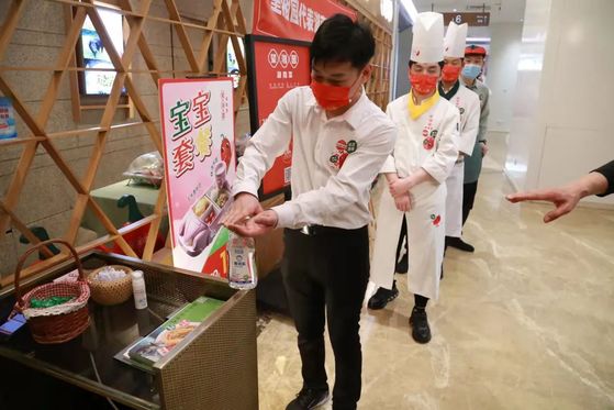 店员手部消毒、测量体温