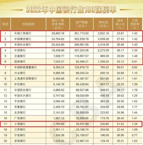 2022年中国银行业100强榜单出炉,我校多家银行类校董单位上榜