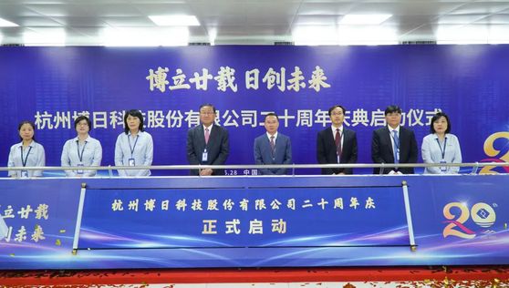 6月28日,“博立廿载,日创未来”——杭州博日科技股份有限公司二十周年庆典启动仪式在公司隆重举行。我校校董、杭州博日科技股份有限公司董事长贺贤汉先生,副董事长包有为先生,董事董小平女士,总经理余海先生,副总经理陈芝娟女士,副总经理甘慧华女士,副总经理朱筱琴女士,研发总监李冬先生等出席启动仪式。