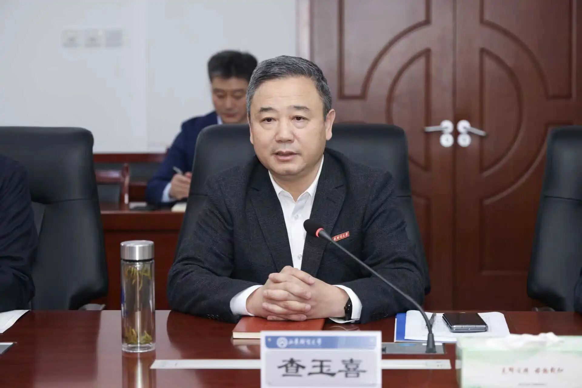 查玉喜书记代表山东财经大学对刘元春校长一行表示欢迎,向上海财经大学长期以来的关心支持表示衷心感谢。他介绍了山财的建设和发展情况,并表示上财历史底蕴深厚、师资力量强大、学术成就显著、社会美誉度高,与山财有着相同的办学基因,双方建立了深厚的友谊和互信,相信通过本次全面战略合作,两校将在党建联建共建、学科建设战略联动、学术交流研究、师资队伍建设、拔尖创新人才培养等方面取得更多务实成果,为高等财经教育高质量发展和教育强国建设作出新的更大贡献。