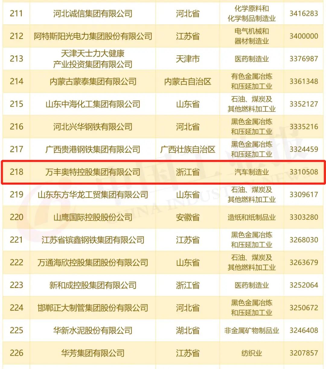 “中国制造业民营企业500强”榜单是全国工商联在对上规模民营企业调研的基础上,按照年营业收入总额降序排列产生,是中国民营企业经济领域最为权威的榜单之一。