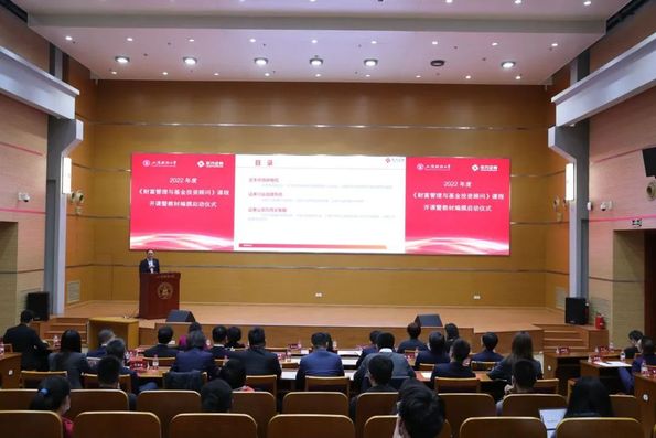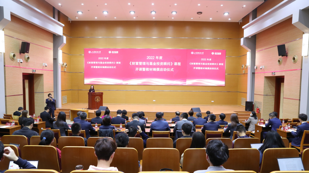 正值上海财经大学105周年校庆之际,上海财经大学与我校校董单位东方证券有限公司2022年度《财富管理与基金投资顾问》课程开课暨教材编撰启动仪式于11月18日(周五)在上海财经大学创业中心报告厅举行。双方联合开设的《财富管理与基金投资顾问》系列课程第一讲也于当天开讲。上海证监局副局长王登勇,上海财经大学副校长姚玲珍,我校校董、东方证券董事长金文忠出席活动并致辞。东方证券副总裁、财富管理业务总部总经理徐海宁发布《财富管理与基金投资顾问》教材编撰情况。上海市证券同业公会副秘书长万菁、上海财经大学合作发展处处长陈红梅、宣传部副部长王雅静,上海证监局投资者保护工作处相关同志,东方证券相关部门负责人、授课老师以及选修课程的学生参加活动。活动由上海财经大学金融学院党委书记刘莉亚主持。